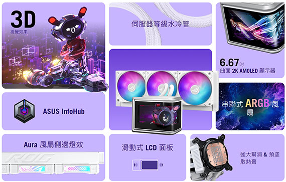 【上一個】【下一個】 | ASUS華碩 ROG RYUO IV SLC 360 ARGB WHT 白龍王四代 短管版 一體式 CPU水冷散熱器