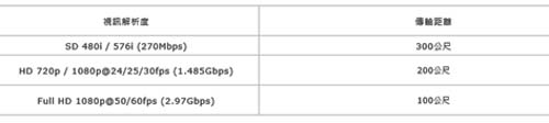 傳輸頻寬:270Mbps ~ 2.97Gbps