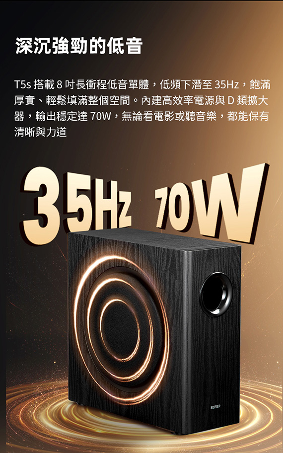 【上一個】【下一個】 | Edifier T5s 黑色 薄型主動重低音喇叭
