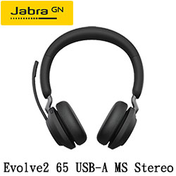 Jabra Evolve2 65 USB-A MS Stereo 黑色 藍牙 無線 頭戴式耳機麥克風 (雙耳)(微軟SKYPE for 企業版專用)(含充電座) 26599-999-989