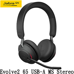 Jabra Evolve2 65 USB-A MS Stereo 黑色 藍牙 無線 頭戴式耳機麥克風 (雙耳)(微軟SKYPE for 企業版專用) 26599-999-999 (購買前請先詢問庫存)