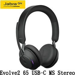 Jabra Evolve2 65 USB-C MS Stereo 黑色 藍牙 無線 頭戴式耳機麥克風 (雙耳)(微軟SKYPE for 企業版專用)(含充電座) 26599-999-889
