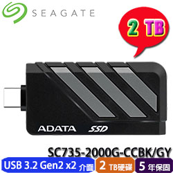 ADATA威剛 2TB SC735-2000G-CCBK/GY 灰 SC735系列 Type-C 外接式SSD固態硬碟(五年保固)