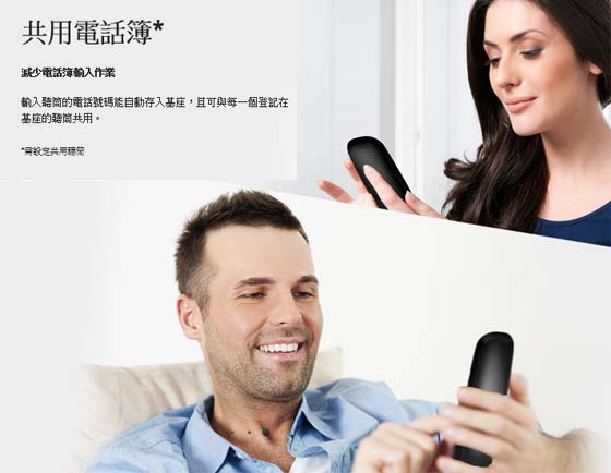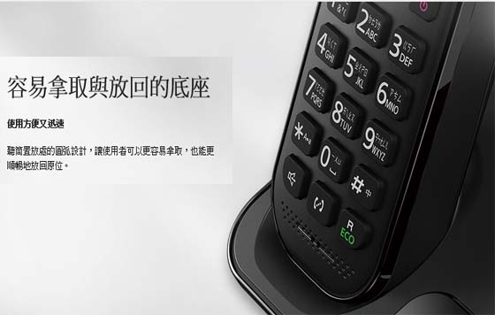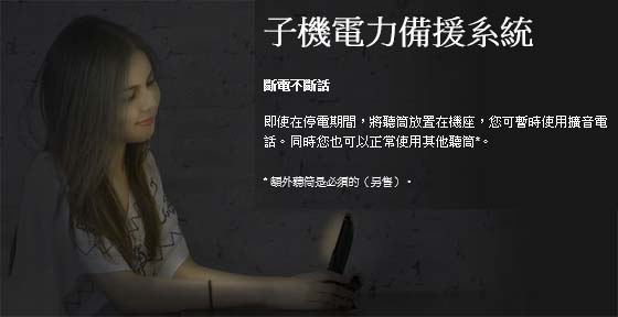 繁體中文輸入電話簿,1.6吋白色背光大螢幕,中文電話簿最多50筆,1.8G數位式無線技術,內線對講,可三分會談,(兩子機以上),單鍵節電模式,待機200小時,連續通話18小時,共用電話簿,子機電力備援系統,NCC認證:CCAB16E10120T0