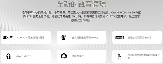 CREATIVE創新未來 Zen Air SXFI 降噪真無線 入耳/耳道式耳機麥克風