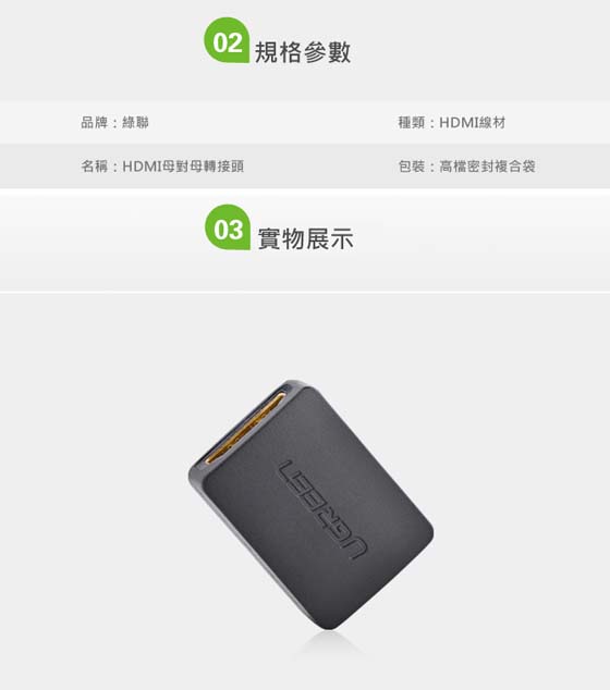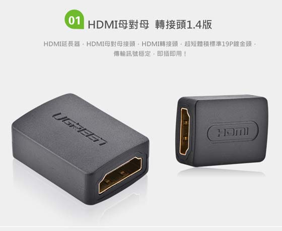 UGREEN綠聯 20107 HDMI 訊號延長器 中繼器 1.4版 A母-A母