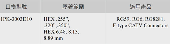 - 適用於CP-371 / CP-336F / 1PK-3003F 壓接鉗配合使用