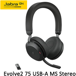 Jabra Evolve2 75 USB-A MS Stereo 黑色 藍牙 無線 頭戴式耳機麥克風(雙耳)(微軟SKYPE for 企業版專用) 27599-999-999
