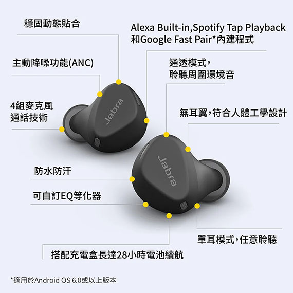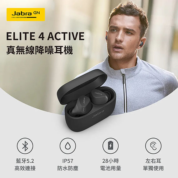Jabra Elite 4 Active 海軍藍 ANC降噪真無線藍牙 入耳/耳道式耳機麥克風