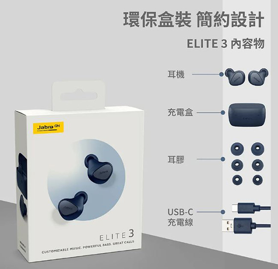 Jabra Elite 3 海軍藍 真無線藍牙 入耳/耳道式耳機麥克風 100-91410001-35