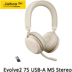 Jabra Evolve2 75 USB-A MS Stereo 米色 藍牙 無線 頭戴式耳機麥克風(雙耳)(微軟SKYPE for 企業版專用) 27599-999-998