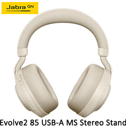 Jabra Evolve2 85 USB-A MS Stereo Stand 米色 藍牙 無線+有線 頭戴式耳機麥克風 (雙耳)(微軟SKYPE for 企業版專用)(含充電座) 28599-999-988