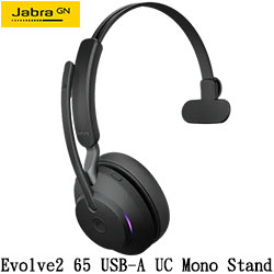 Jabra Evolve2 65 USB-A UC Mono stand 黑色 藍牙 無線 頭戴式耳機麥克風 (單耳)(含充電座) 26599-889-989