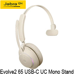 Jabra Evolve2 65 USB-C UC Mono stand 米色 藍牙 無線 頭戴式耳機麥克風 (單耳)(含充電座) 26599-889-888