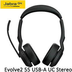 Jabra Evolve2 55 USB-A UC Stereo 黑色 藍牙 無線 頭戴式耳機麥克風 (雙耳) 25599-989-999