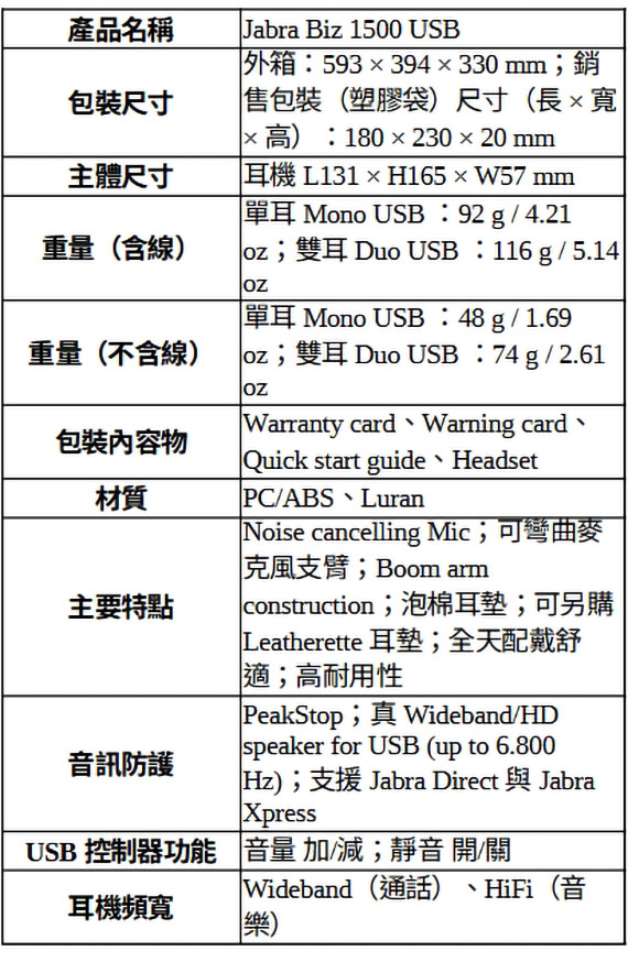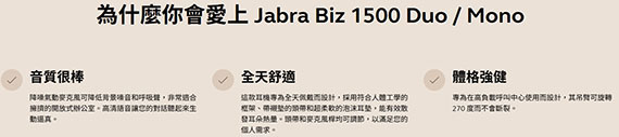 Jabra Biz 1500 Duo USB-A 黑色 有線 頭戴式耳機麥克風 (雙耳) 1559-0159(商用機種,請來電詢價)