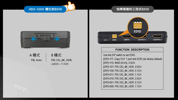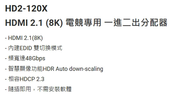 PX大通 HD2-120X 一進二出 HDMI 2.1(8K)電競專用分配器