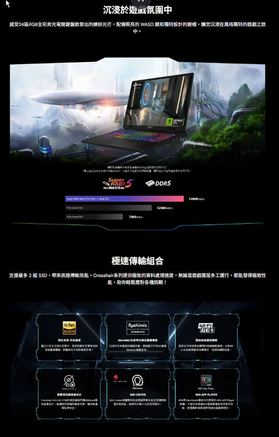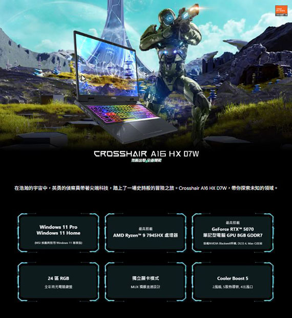 MSI微星 Crosshair A16 HX D7WGKG-044TW (16吋/R9-7945HX/16GB/1TB/RTX5070/Home/2.5kg)