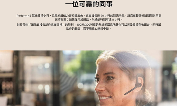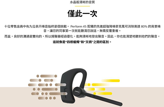 Jabra Perform 45 高效協作立體聲單耳藍牙 入耳/耳道式耳機麥克風 5101-119