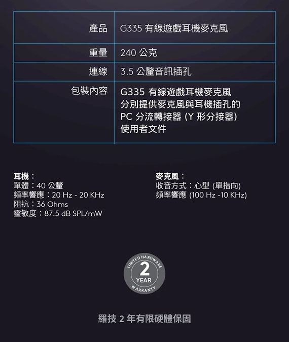 耳戴/耳罩式/護耳式/全罩,驅動單元40mm,3.5mm音訊接頭,Y 型分接器,心型(單指向)桿式麥克風,向上翻折可立即靜音,耳罩上的音量轉輪可調整遊戲或音樂音量,輕盈240g,具有可調整的懸浮頭帶設計,柔軟透氣的記憶泡棉耳墊與運動網格材質包覆耳朵,頭帶可雙面使用可水洗可更換(另購頭帶花色),相容於 PC、遊戲主機和行動裝置(981-001026) BSMI認證碼: R41126