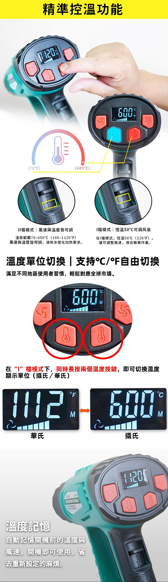 - 支援 ℃ / ℉ 溫度單位切換,滿足不同使用需求