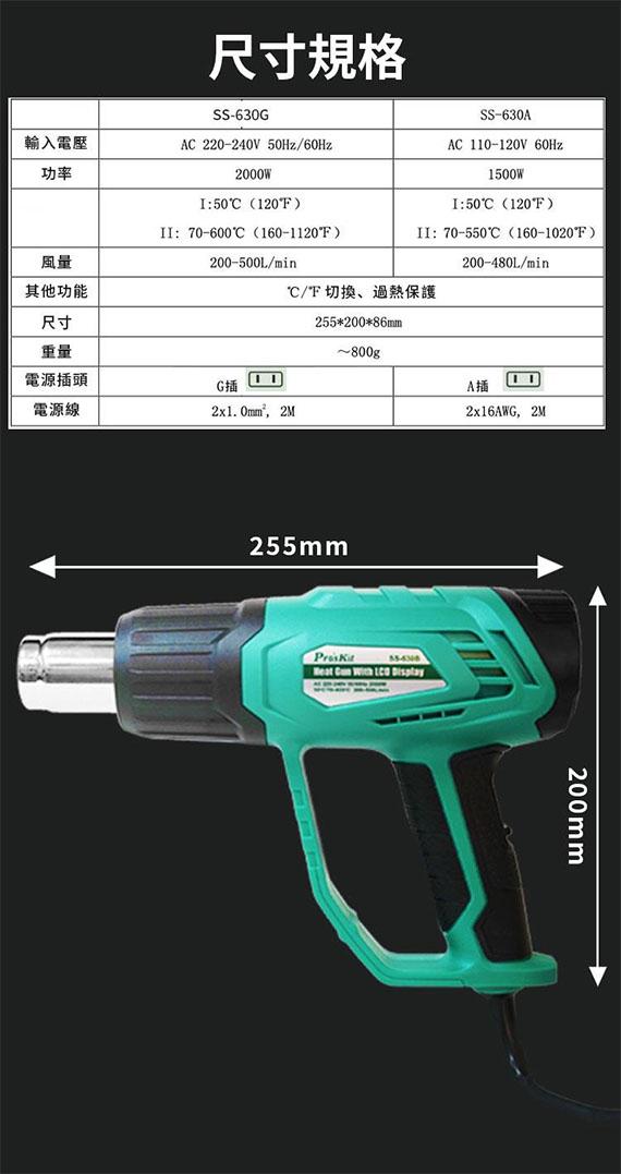ProsKit寶工 SS-630A 數顯型熱風槍 (120V/1500W)