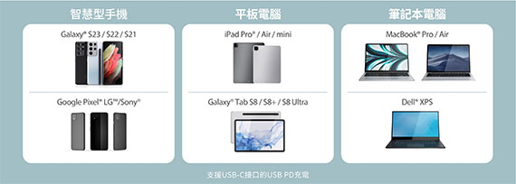 適用於USB-C設備:智慧型手機,平板電腦或筆記本電腦