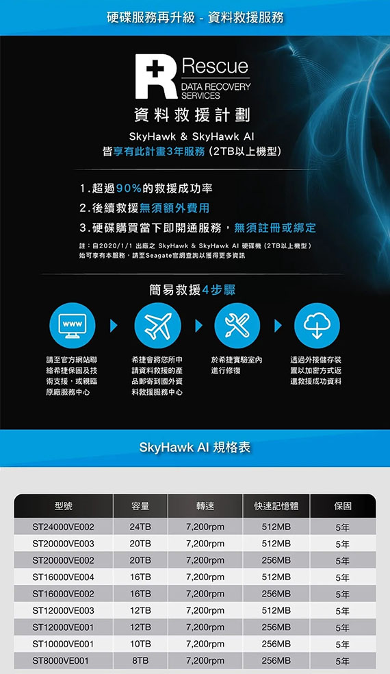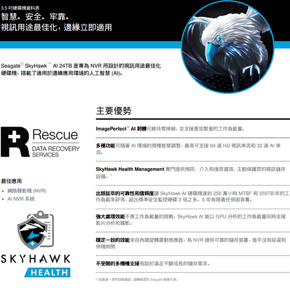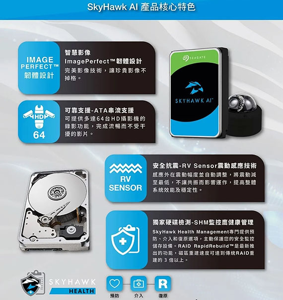 SEAGATE 12TB ST12000VE003 SkyHawk AI(監控鷹AI) 監控專用硬碟 (五年保固)