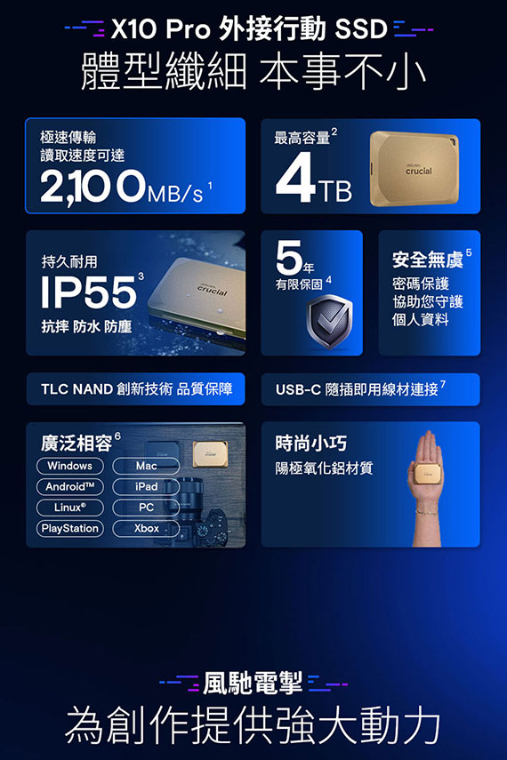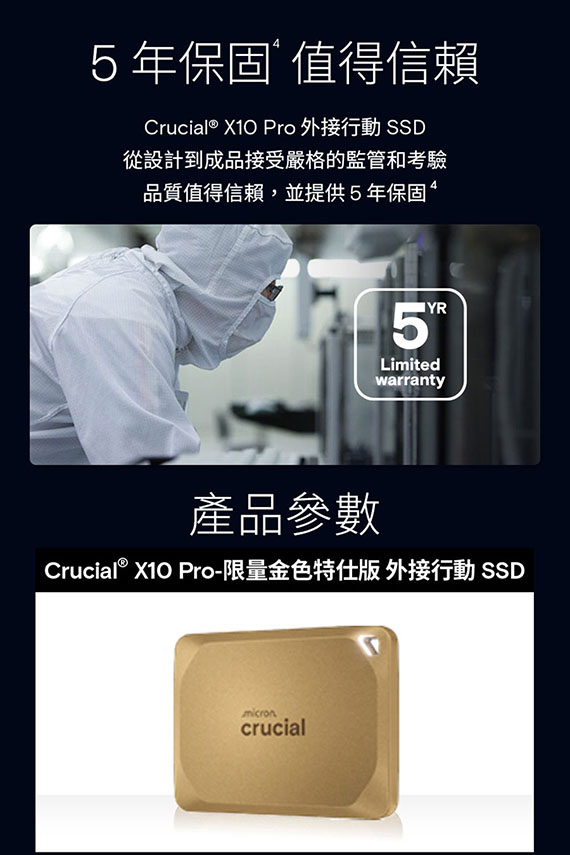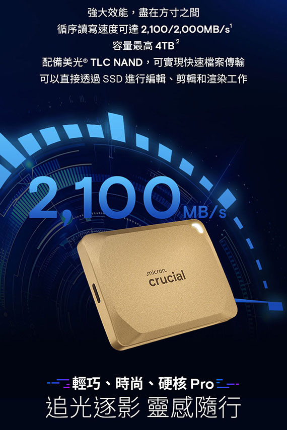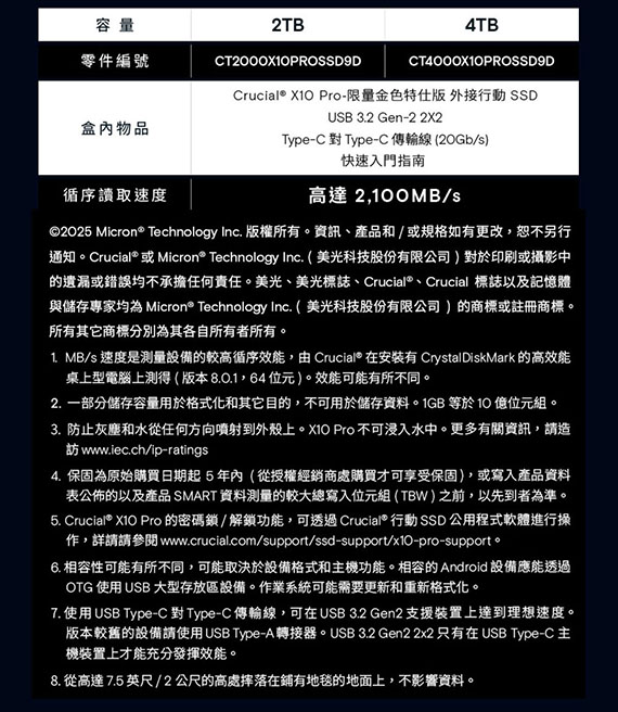 Micron美光 Crucial 2TB CT2000X10PROSSD9D X10 Pro 金色特仕版 外接式SSD硬碟機(五年保固)(購買前請先詢問庫存)