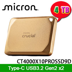 Micron美光 Crucial 4TB CT4000X10PROSSD9D X10 Pro 金色特仕版 外接式SSD硬碟機(五年保固)(購買前請先詢問庫存)