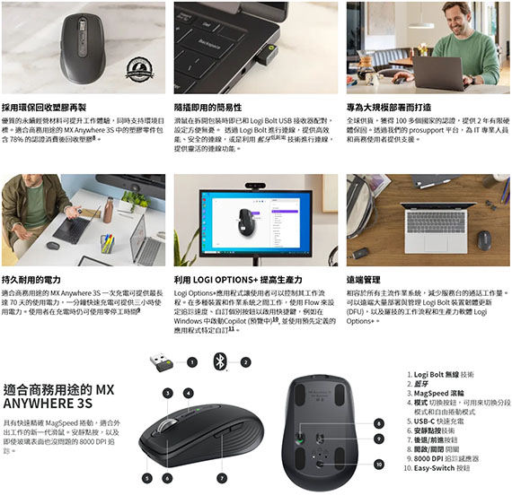Logitech羅技 MX ANYWHERE 3S FOR BUSINESS 石墨灰 無線便攜式行動滑鼠 B2B 企業版(特價,售完調漲)