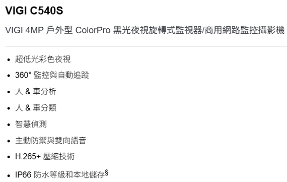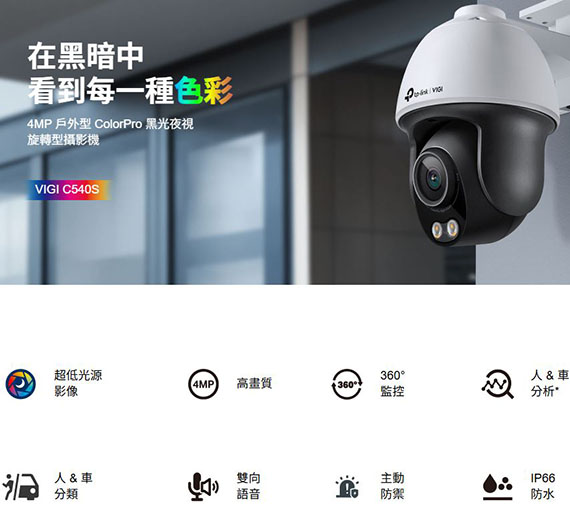 TP-Link VIGI C540S 4MP 戶外型ColorPro黑光夜視 旋轉式 網路監控攝影機