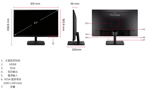 ViewSonic優派 VA2732-MH-2 27型 16:9 27吋 LED液晶 螢幕 (IPS/1ms/100Hz/1A1H/喇叭)