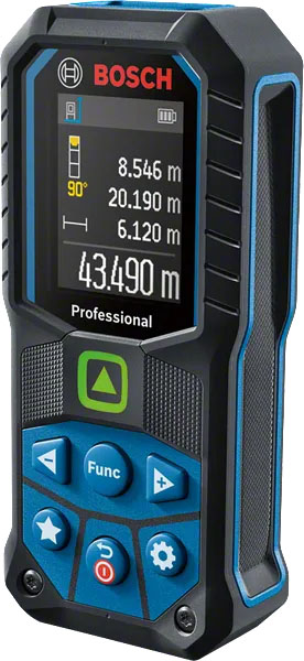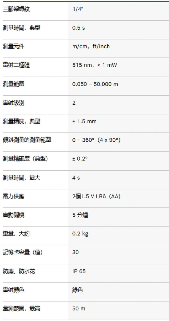 二合一雷射測量和綠色雷射,整合式的360°傾斜感測器可輕鬆進行角度/傾斜度測量,直覺的使用者介面以及其他支援功能(收藏夾按鈕、彩色顯示幕、說明功能)使操作更加便捷,IP65防護等級和減震橡膠外殼