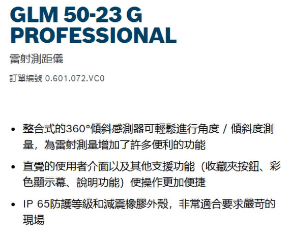 BOSCH GLM 50-23 G Professional 雷射測距儀(0601072VC0)