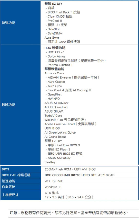 ※以上規格資料或內附配件若有變更或任何錯誤,恕不另行通知,以原廠所公佈資料為準。 |