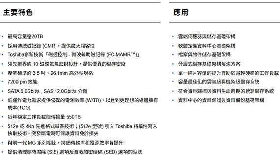 SAS 3.0傳輸介面、轉速:7200RPM、512MB快取記憶體、採用傳統磁記錄(CMR)、3.5吋規格尺寸、五年有限保固