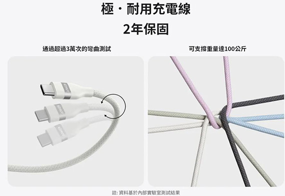 • 超感柔軟充電線 / 通過超過3萬次的彎曲測試