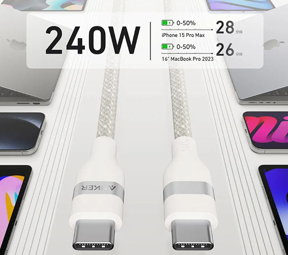 • 可支撐重量達100公斤 / 超高速240瓦充電線