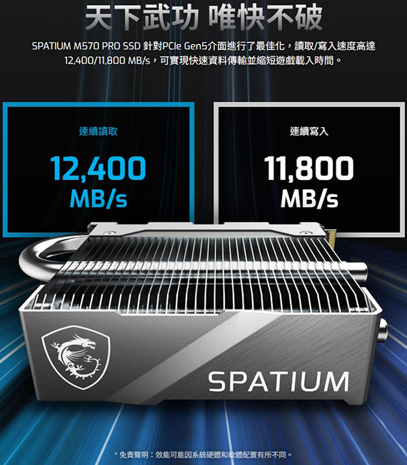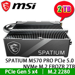 MSI微星 2TB SPATIUM M570 Pro系列 FROZR M.2 2280 PCIe NVMe SSD固態硬碟 (TLC) (五年保固) (客訂)