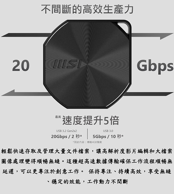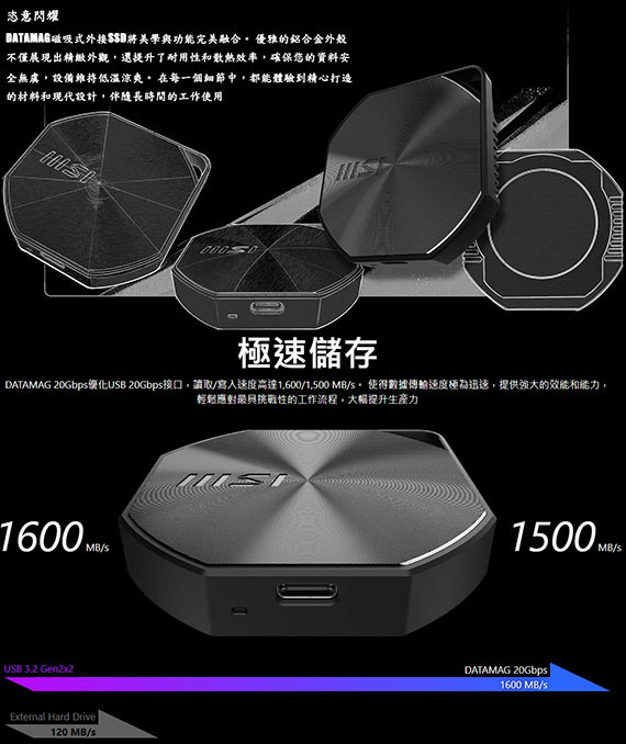 MSI微星 2TB DATAMAG 20Gbps Type-C 磁吸式 外接式SSD固態硬碟 (五年保固)