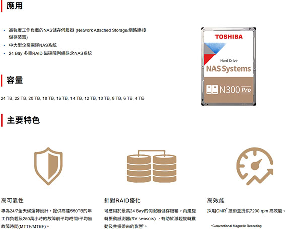 TOSHIBA 24TB HDWG82EAZSTB N300 PRO NAS專用硬碟 (五年保固) (客訂請先詢價)