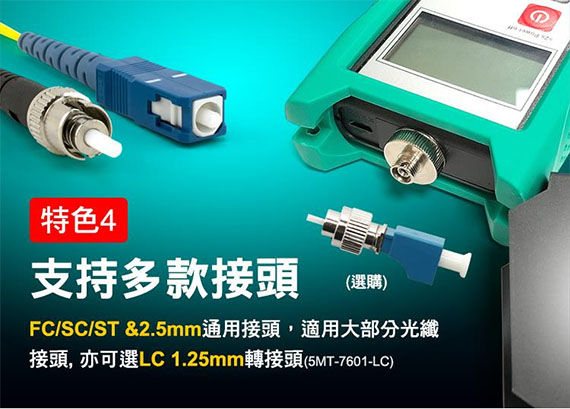 - 支援FC/SC/ST 光纖接頭 (LC接頭須另外選購)