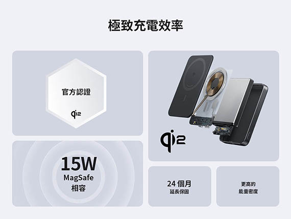 電池容量:7.74Vdc/38.7Wh,輸出:Type-C孔,MagSafe相容,厚度僅約1.43cm,超薄磁吸式,官網登錄序號 保固延長18+6共24個月(無登錄序號保固18個月)