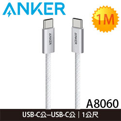 ANKER A8060 白色 240W 編織 Type-C USB傳輸線 C公-C公 1M