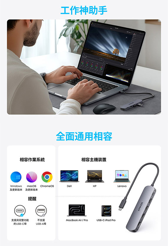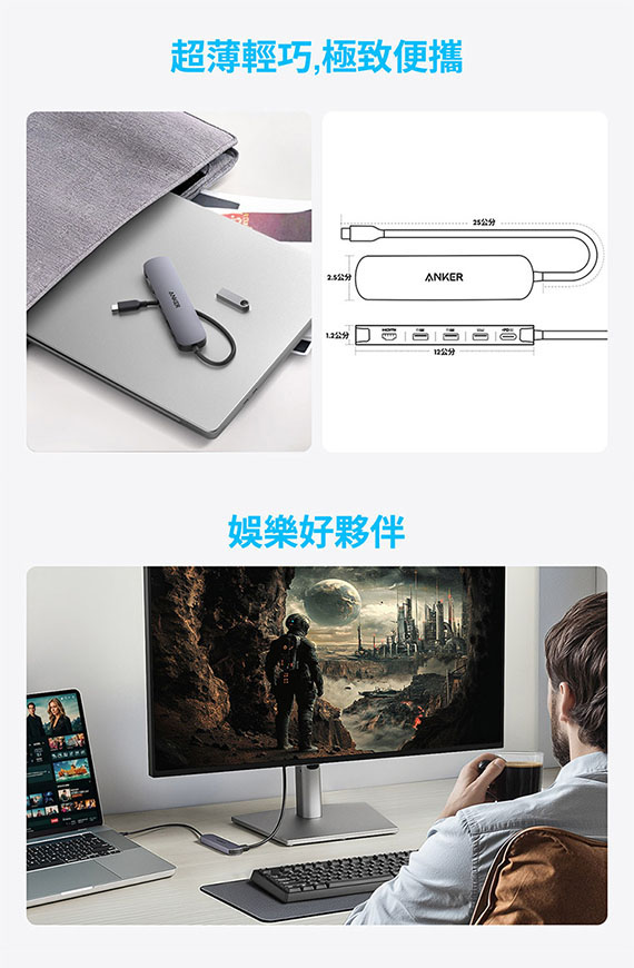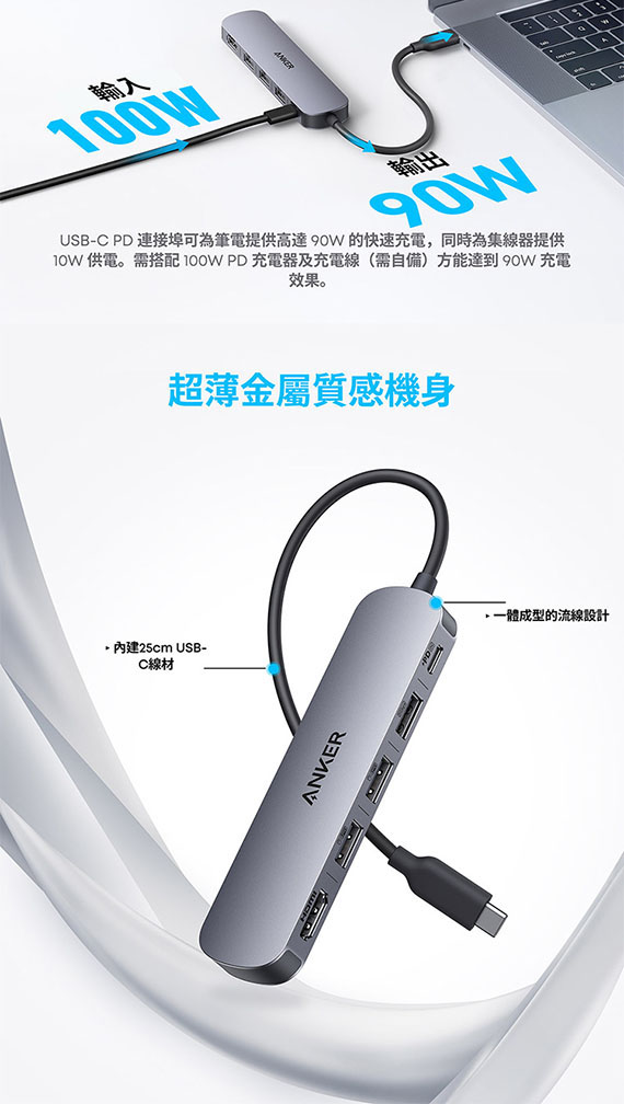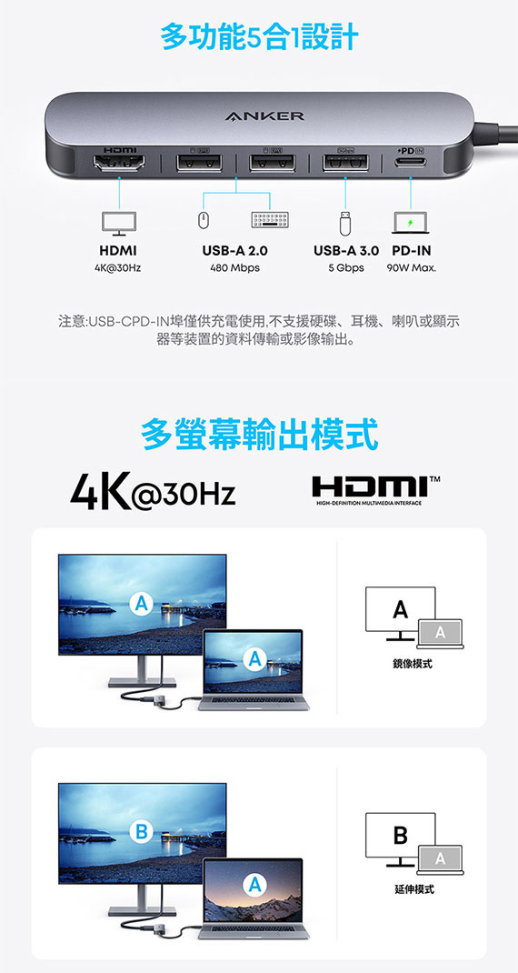 ANKER A8357 黑灰色 USB-C Hub 5合1 多功能集線器