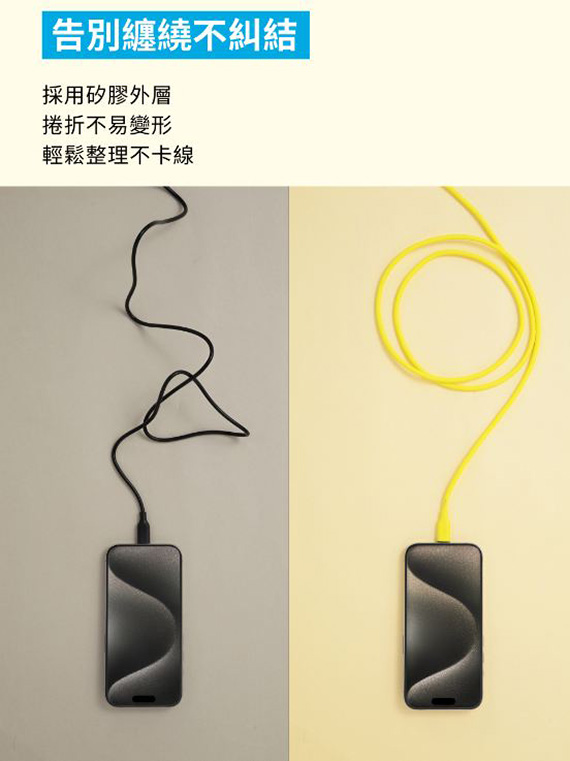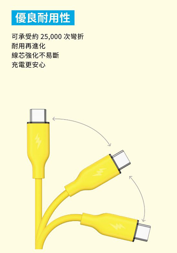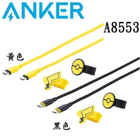 ANKER A8553 黃色 240W 皮卡丘 Type-C 親膚矽膠材質傳輸線 C公-C公 1.8M