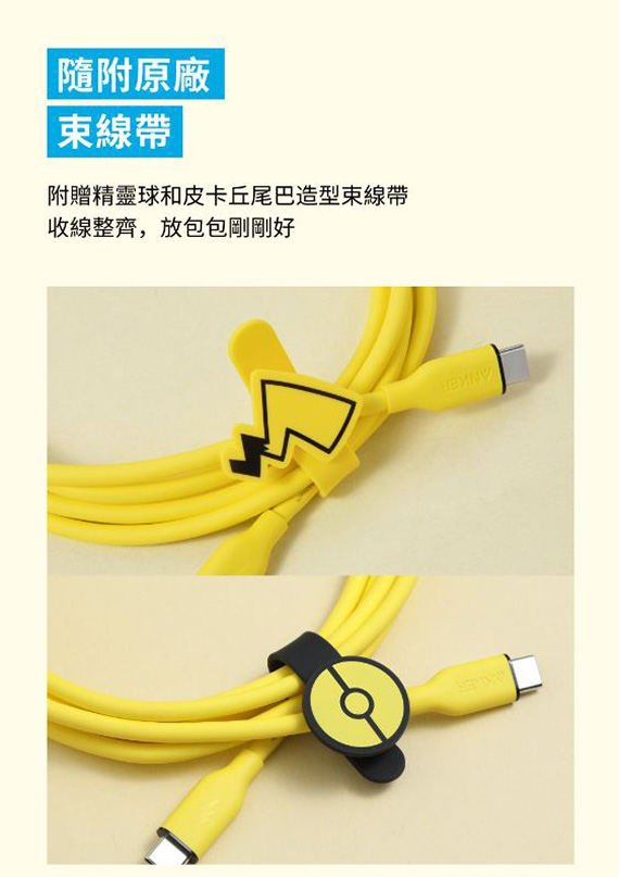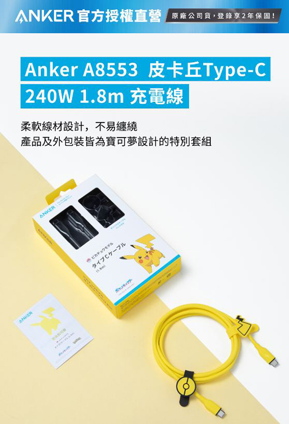 USB,C公--C公,線長:1.8公尺(1.8米)/180公分(180cm),240W 全能快充, 寶可夢典藏版 防纏繞USB-C快充線組,隨附限定版整線帶,精工精靈球*皮卡丘尾翼造型綁帶,MacBook Pro 滿速充電支援,硅膠材質線身鐫刻皮卡丘紋理, 捲折不易變形、不卡線,線芯強化不易斷,通過超過25000次的彎曲測試
