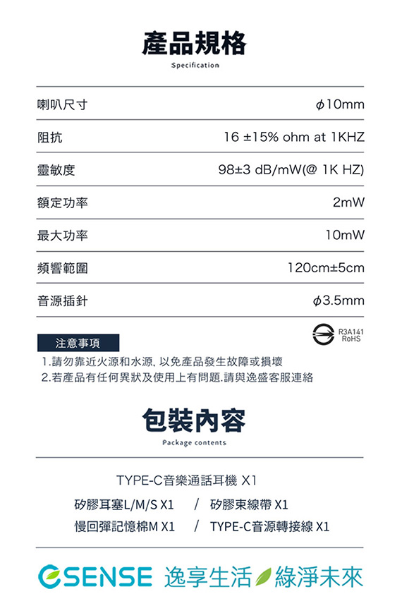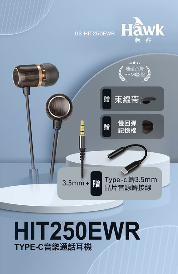 eSENSE逸盛 03-HIT250EWR Hawk 高密度木質TYPE-C音樂通話 入耳/耳道式耳機麥克風