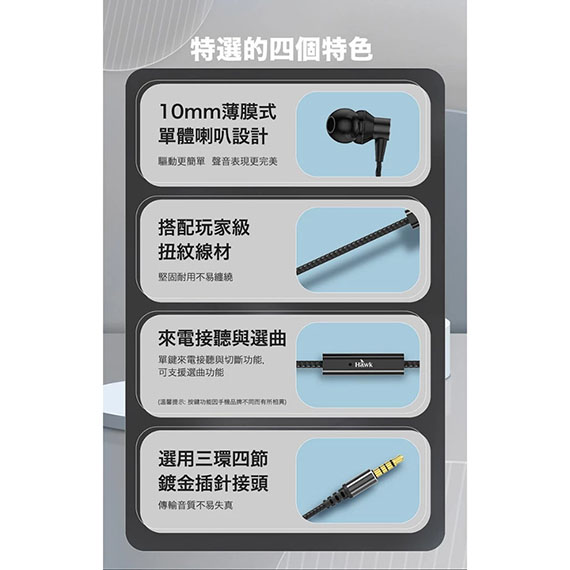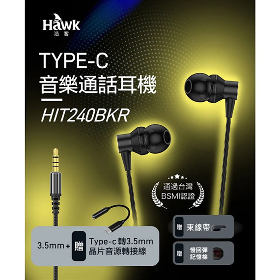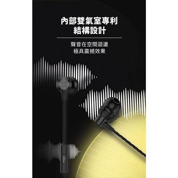 eSENSE逸盛 03-HIT240BKR Hawk 雙氣室TYPE-C音樂通話 入耳/耳道式耳機麥克風